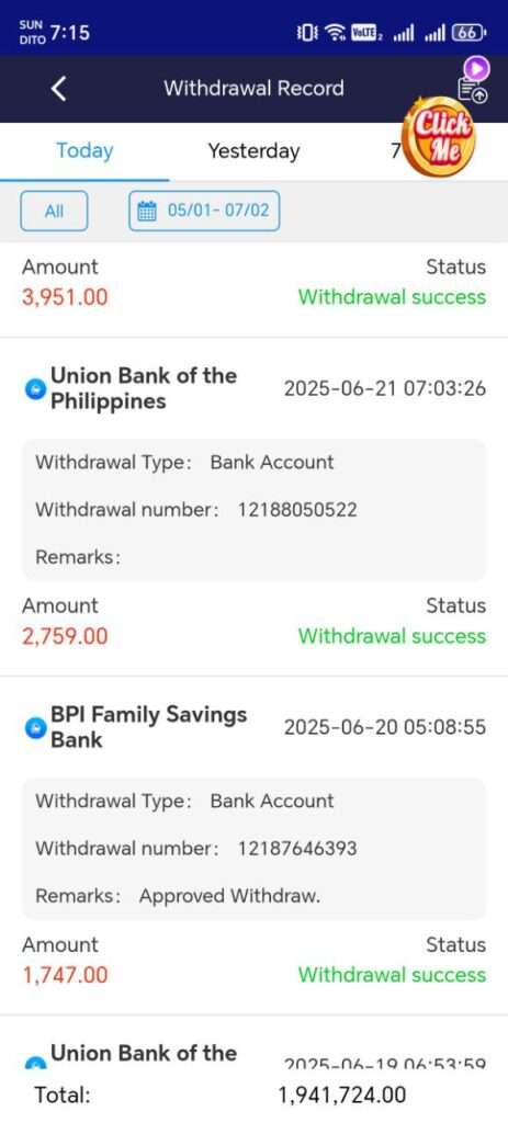 📆 Weekly payouts every Sunday – Note that sometimes delay ang payout, and it turns out to be Monday paminsan and release.