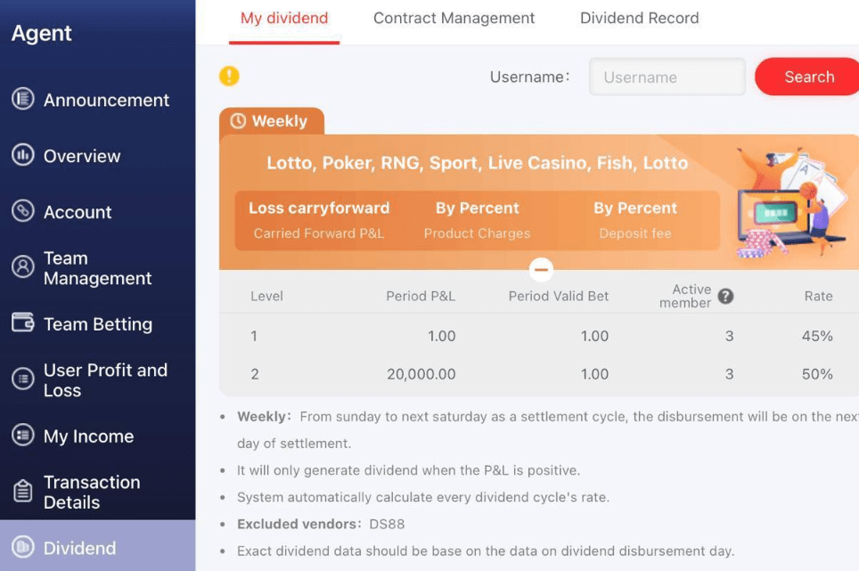 A Master Agent is someone who earns weekly commissions by referring players to our online casino platform. You’ll earn a percentage of your team’s net profit — up to 50% weekly — plus slot rebates.